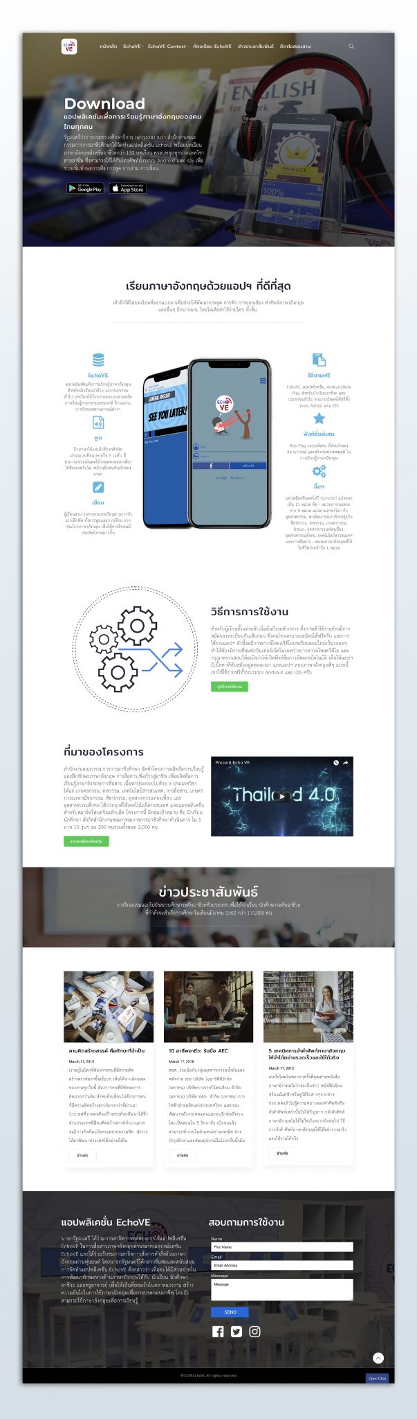 ผมได้รับการติดต่อ เพื่อ พัฒนาเว็บไซต์ แนะนำ แอพพลิเคชั่นเพื่อการเรียนรู้ภาษาอังกฤษของคนไทยทุกคน โดย รัฐมนตรีว่าการกระทรวงศึกษาธิการ กล่าวรายงานว่า สำนักงานคณะกรรมการการอาชีวศึกษาได้จัดทำแอปพลิเคชั่น EchoVE พร้อมบทเรียนภาษาอังกฤษสำหรับอาชีวะกว่า 130 บทเรียน  และ ในเว็บไซต์ จะใช้ในการ ประชาสัมพันธ์  ประกาศคะแนน กิจกรรม การแข่งขันการใช้งานภาษาอังกฤษ โดยข้อมูลและรูปภาพ จะถูกกำหนดมา ทั้งหมด จึงมีความสั้นยาวที่ต่างกัน