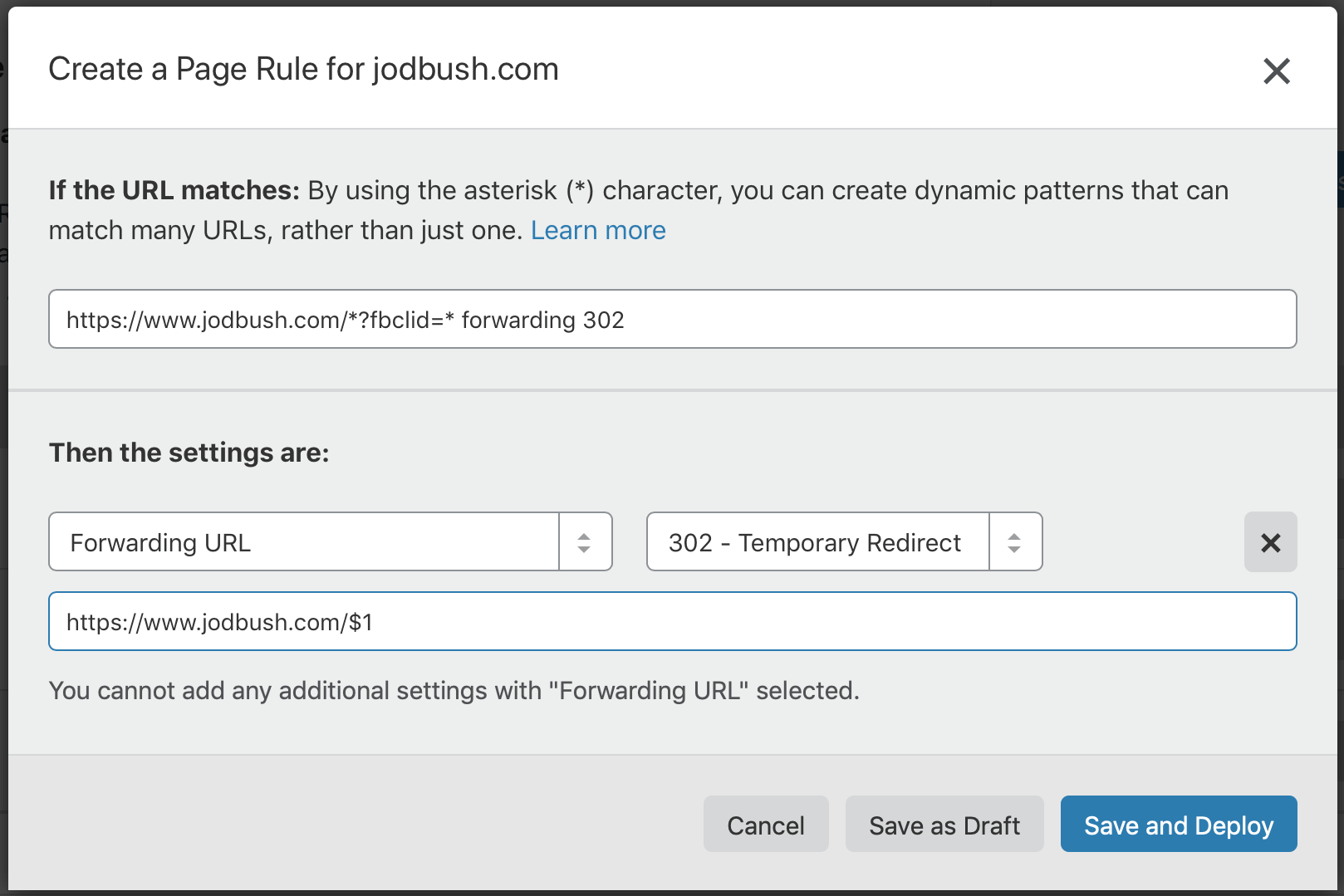 https://www.example.com/*?fbclid=* forwarding 302 to https://www.example.com/$1